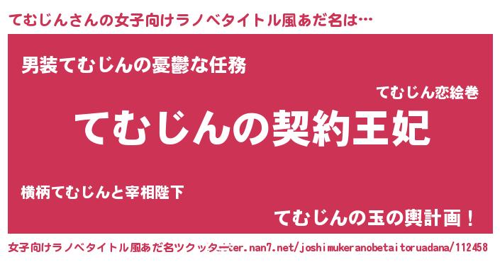 | 男性向けラノベタイトル風あだ名 | 『誰もが恐れるあのてむじんが、ぼくの専属メイドになるようです。』 |