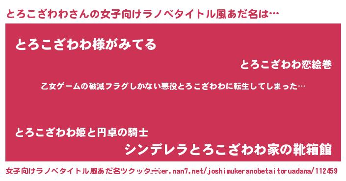 | 男性向けラノベタイトル風あだ名 | 『この素晴らしい世界にとろこざわわを!』 |
