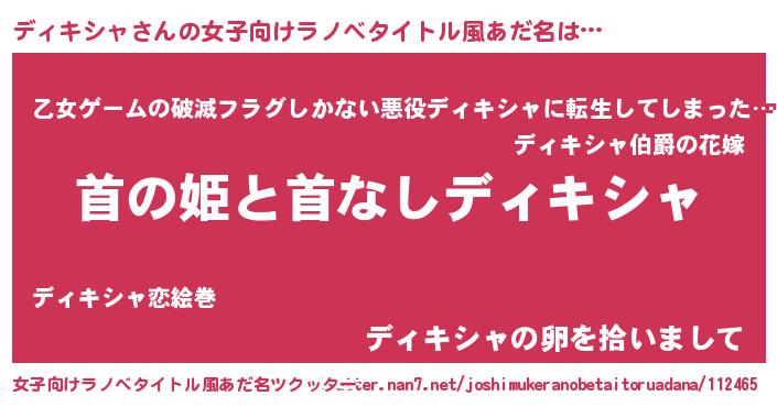 | 男性向けラノベタイトル風あだ名 | 『はたらくディキシャさま!』 |