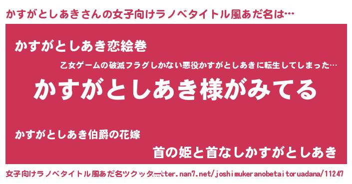 | 肩書あだ名 | 『かすがとしあきリーダー』 |