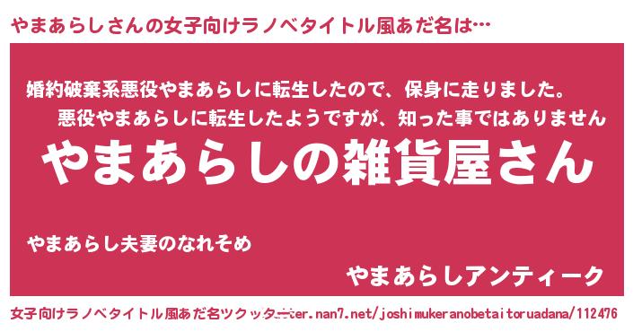 | 男性向けラノベタイトル風あだ名 | 『やはりやまあらしの青春ラブコメはまちがっている 』 |