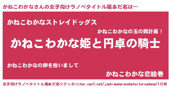| 男性向けラノベタイトル風あだ名 | 『カネコワカナアートオンライン』 |
