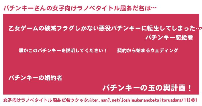 | 男性向けラノベタイトル風あだ名 | 『バチンキーアートオンライン』 |