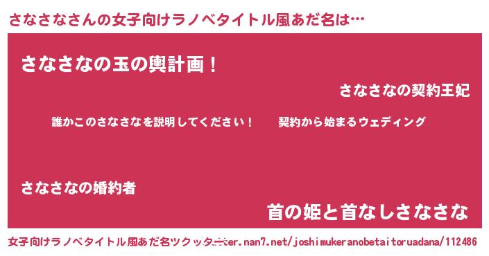 | 男性向けラノベタイトル風あだ名 | 『サナサナアートオンライン』 |