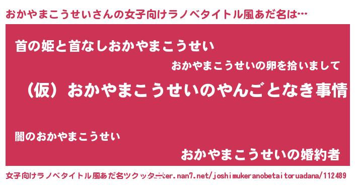 | 男性向けラノベタイトル風あだ名 | 『おかやまこうせいの憂鬱』 |