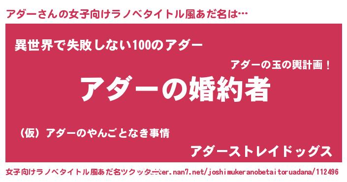 | 意味不明あだ名 | 『アダーフォーエバー』『永久保存アダー』 |