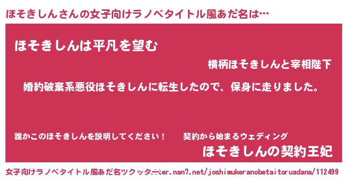 | 男性向けラノベタイトル風あだ名 | 『転生したらほそきしんだった件』 |