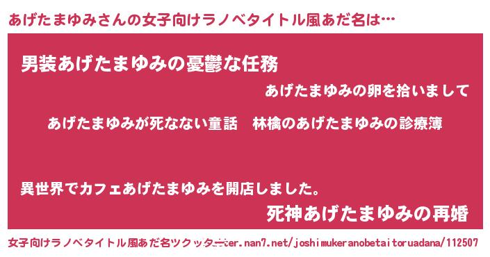 | ヘコむあだ名 | 『あげ太郎』『あげたまゆみ(笑)』 |