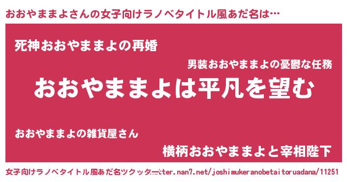 | 男性向けラノベタイトル風あだ名 | 『ダンジョンにおおやままよを求めるのは間違っているだろうか』 |