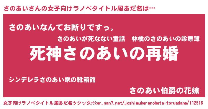 | 男性向けラノベタイトル風あだ名 | 『ノーゲーム・ノーサノアイ』 |