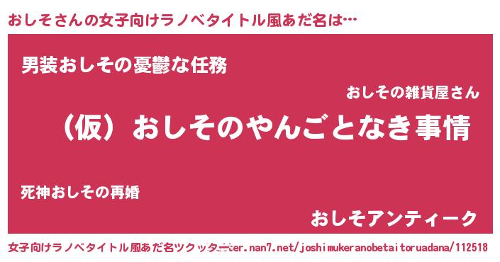 | 胡散臭い通販商品みたいなあだ名 | 『必ず成功する霊験あらたかなお札…その名も「おしそ」』 |