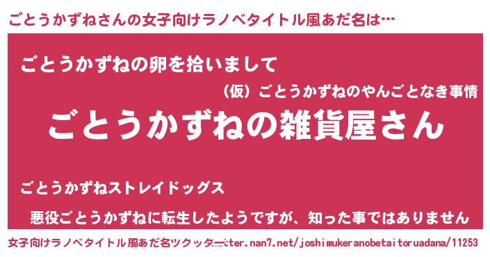 | 男性向けラノベタイトル風あだ名 | 『やはりごとうかずねの青春ラブコメはまちがっている 』 |