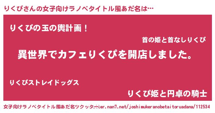 | ファンタジー風あだ名 | 『リクディッシュ』『ユリリクヴァット』 |
