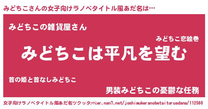 | 男性向けラノベタイトル風あだ名 | 『ダンジョンにみどちこを求めるのは間違っているだろうか』 |