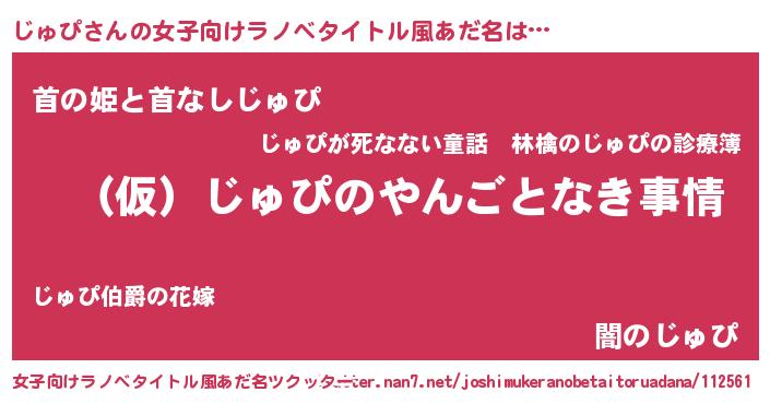 | 胡散臭い通販商品みたいなあだ名 | 『必ず成功する霊験あらたかなお札…その名も「じゅぴ」』 |