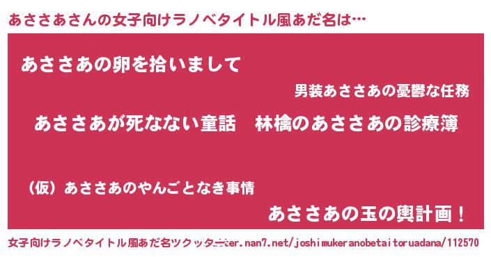 | 恥ずかしいあだ名 | 『アサリンリン』『プリティーあささあ』 |