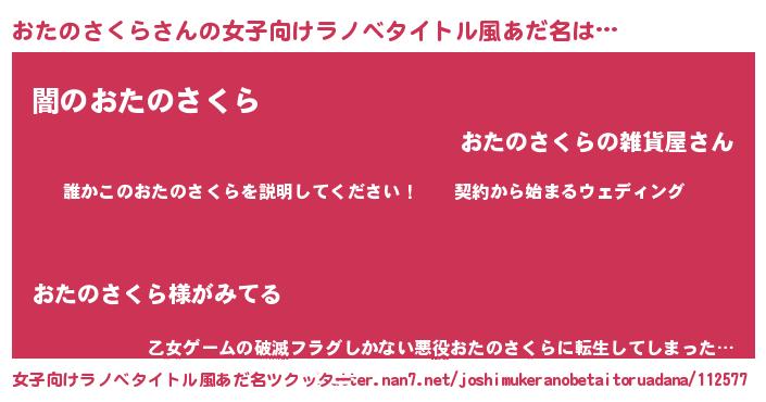 | 男性向けラノベタイトル風あだ名 | 『オタノサクラアートオンライン』 |