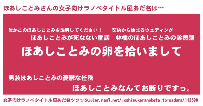 | 胡散臭い通販商品みたいなあだ名 | 『伝統あるペンダント…その名も「ほあしことみ」』 |
