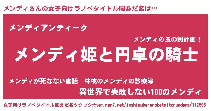 | 胡散臭い通販商品みたいなあだ名 | 『モテモテ間違いなし霊験あらたかなお札…その名も「メンディ」』 |