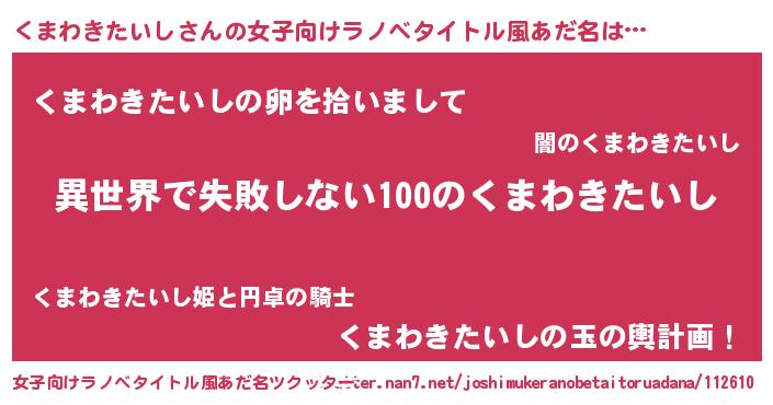 | 男性向けラノベタイトル風あだ名 | 『くまわきたいしという概念が存在しない退屈な世界 』 |