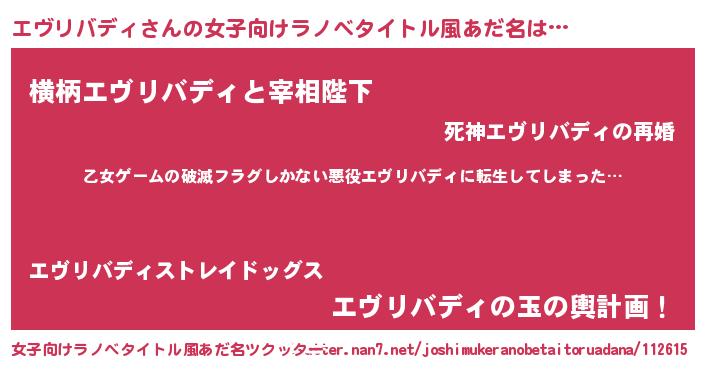 | ヒーロー風カッコイイあだ名 | 『仮面エヴダー』『究極戦士エヴリバディ』 |