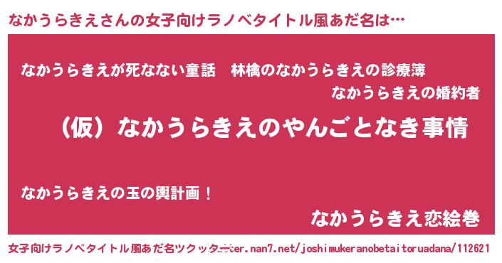 | 胡散臭い通販商品みたいなあだ名 | 『必ず成功する霊験あらたかなお札…その名も「なかうらきえ」』 |