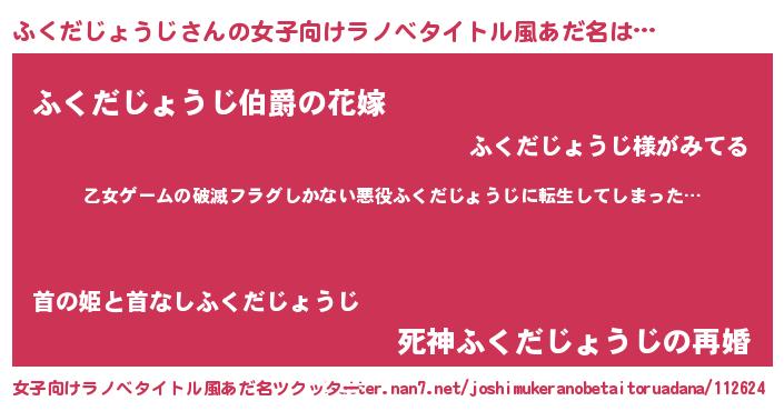 | 男性向けラノベタイトル風あだ名 | 『この素晴らしい世界にふくだじょうじを!』 |