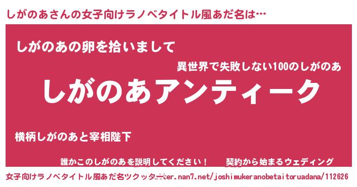 | 男性向けラノベタイトル風あだ名 | 『魔法科高校のしがのあ』 |