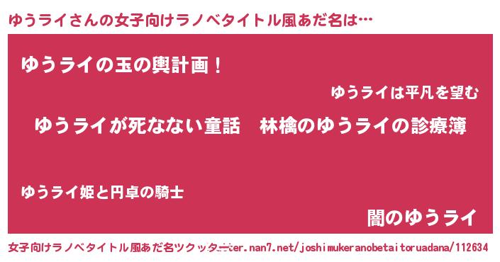 | 恥ずかしいあだ名 | 『ユウライデラックス』『ユウリンリン』 |