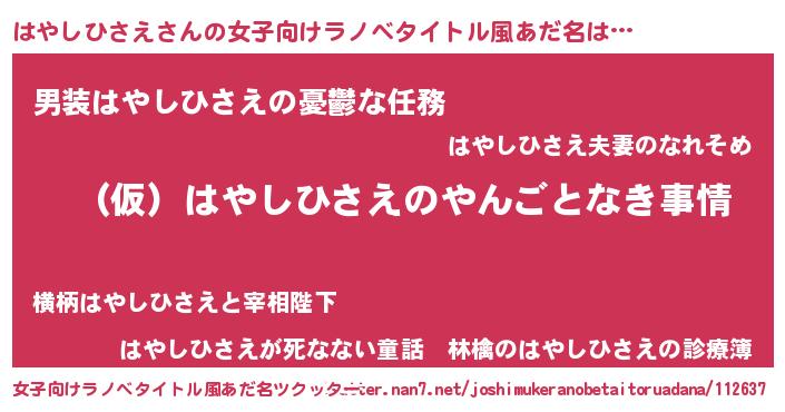 | 男性向けラノベタイトル風あだ名 | 『はやしひさえの憂鬱』 |