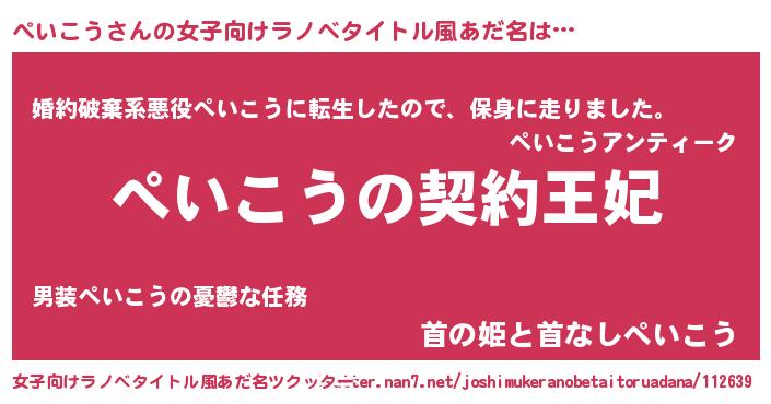 | 男性向けラノベタイトル風あだ名 | 『誰もが恐れるあのぺいこうが、ぼくの専属メイドになるようです。』 |
