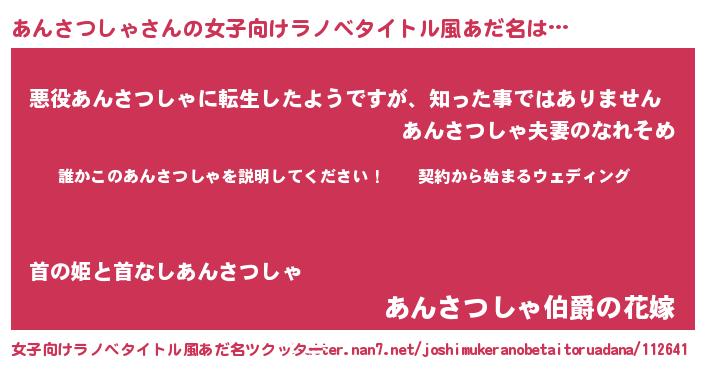 | 胡散臭い通販商品みたいなあだ名 | 『億万長者になれるブレスレット…その名も「あんさつしゃ」』 |