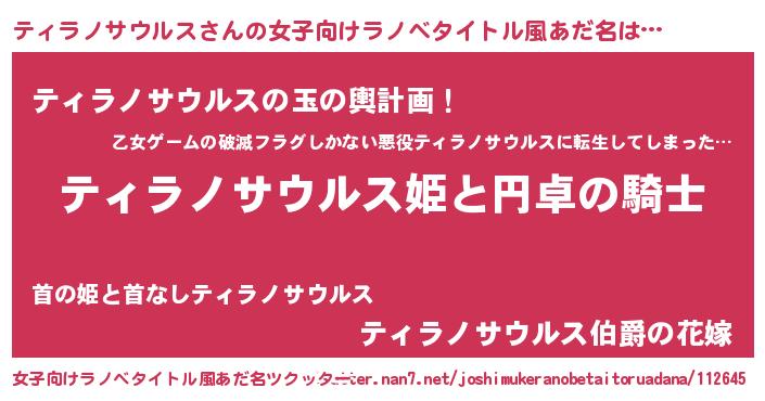 | 男性向けラノベタイトル風あだ名 | 『ティラノサウルスアートオンライン』 |