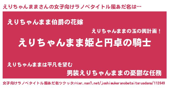 | 胡散臭い通販商品みたいなあだ名 | 『モテモテ間違いなしブレスレット…その名も「えりちゃんまま」』 |