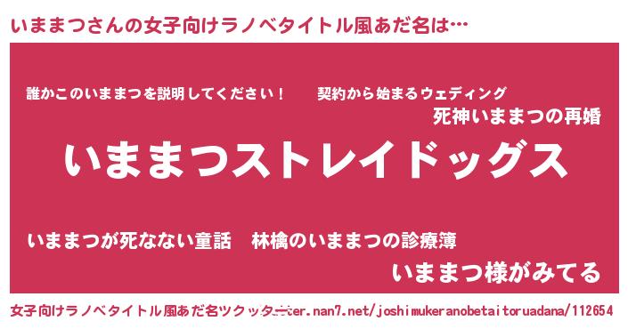 | 男性向けラノベタイトル風あだ名 | 『Re:いままつから始める異世界生活』 |