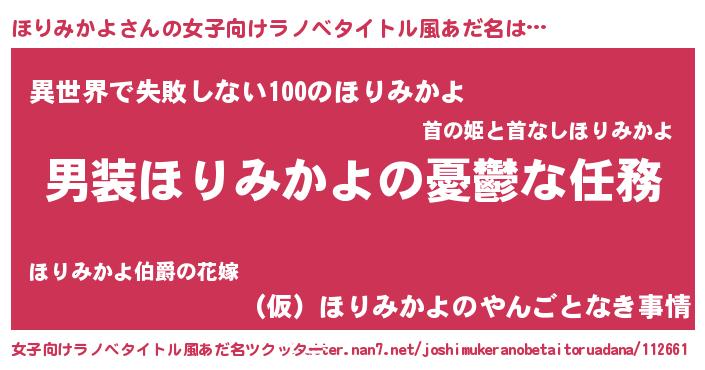 | ヘコむあだ名 | 『ほりみかよ(爆)』『ほりにゅー』 |