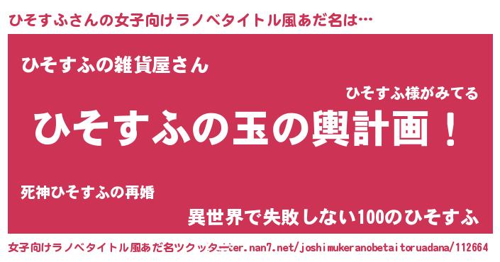 | ヒーロー風カッコイイあだ名 | 『ウルトラひそすふマン』『ネオヒソスフ』 |