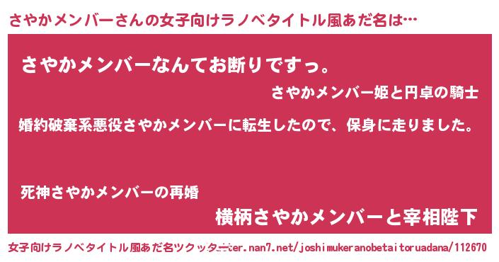 | 男性向けラノベタイトル風あだ名 | 『サヤカメンバースレイヤー』 |