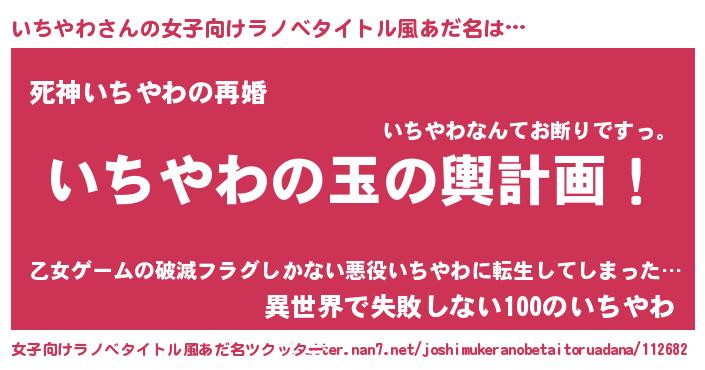 | 男性向けラノベタイトル風あだ名 | 『いちやわ~年齢イコール彼女いない歴の魔法使い~』 |