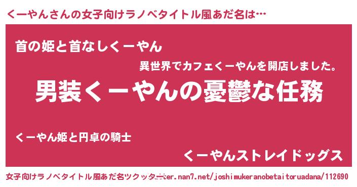 | 男性向けラノベタイトル風あだ名 | 『うちのくーやんが世界を掌握している!』 |
