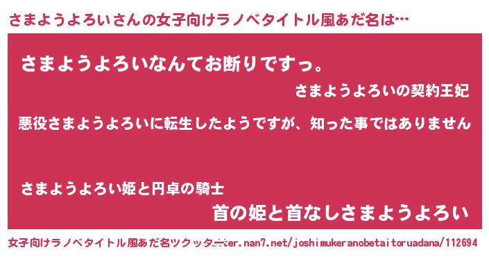 | 男性向けラノベタイトル風あだ名 | 『この素晴らしい世界にさまようよろいを!』 |