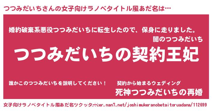 | 胡散臭い通販商品みたいなあだ名 | 『来世でも幸せになれる水素水…その名も「つつみだいち」』 |