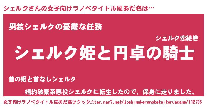 | 男性向けラノベタイトル風あだ名 | 『シェルクアートオンライン』 |