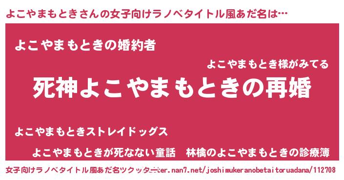 | 男性向けラノベタイトル風あだ名 | 『ノーゲーム・ノーヨコヤマモトキ』 |