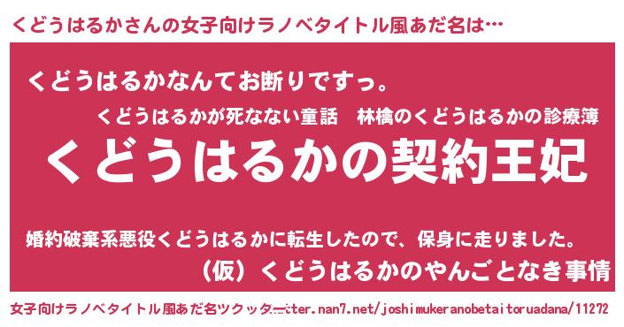 | 男性向けラノベタイトル風あだ名 | 『誰もが恐れるあのくどうはるかが、ぼくの専属メイドになるようです。』 |