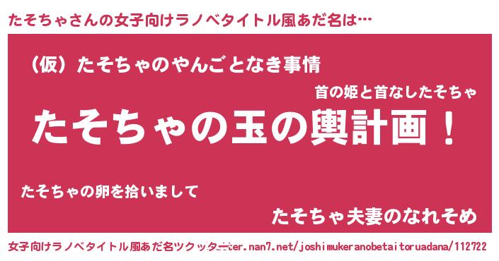 | 胡散臭い通販商品みたいなあだ名 | 『億万長者になれる霊験あらたかなお札…その名も「たそちゃ」』 |