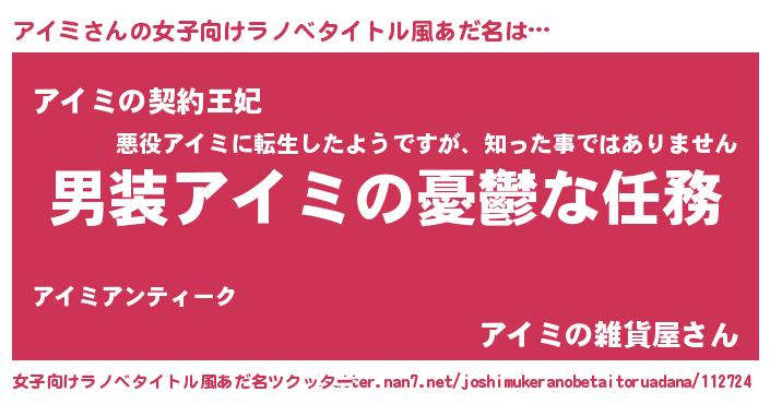 | ヒーロー風カッコイイあだ名 | 『ネオアイミ』『ウルトラアイミマン』 |