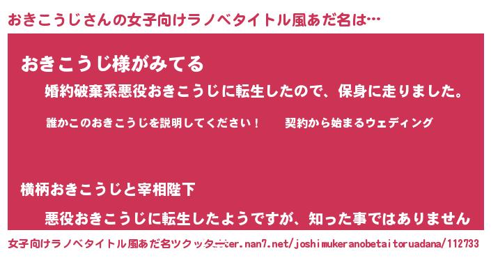 | 男性向けラノベタイトル風あだ名 | 『オキコウジアートオンライン』 |