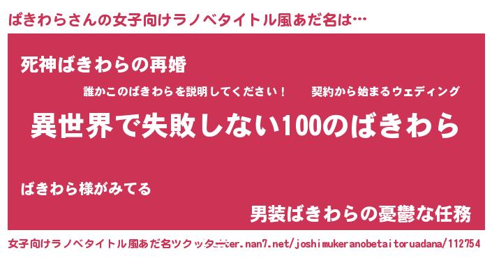 | 男性向けラノベタイトル風あだ名 | 『ばきわらという概念が存在しない退屈な世界 』 |