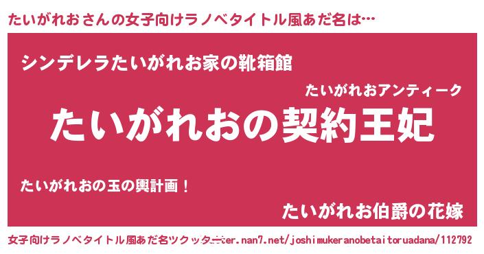 | 男性向けラノベタイトル風あだ名 | 『たいがれおという概念が存在しない退屈な世界 』 |
